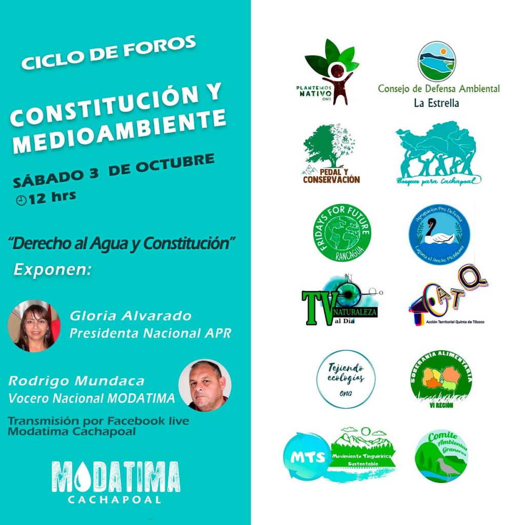 Los dejamos a todos y todas invitadas a evento sobre derecho al agua y la constitución para mañana sábado a las 3pm. El evento es organizado por Modatima Cachapoal, además contará con la participación de Rodrigo Mundaca, Vocero Nacional MODATIMA.