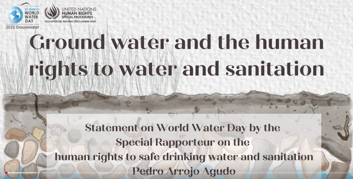 El Relator Especial de la ONU sobre los derechos humanos al agua potable y el saneamiento, Pedro Arrojo Agudo, ha pedido el fin de la apropiación, contaminación y sobreexplotación de las aguas subterráneas para salvaguardar los derechos humanos al agua y al saneamiento y mitigar riesgos sociales derivados del cambio climático. Con motivo del Día